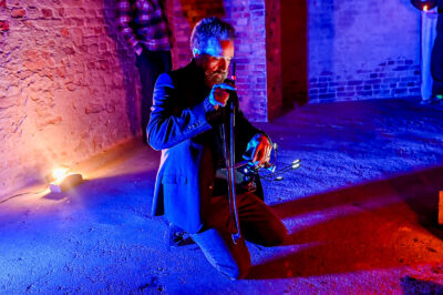 In the performance “Crossing the LIGHTbridge”, handmade instruments made by Kriton Beyer will be used. His main instrument, the Daxophone, is a dark electric wooden experimental musical instrument, inspired by the original construction plans of its inventor Hans Reichel, slightly adapted to suit Kriton’s aesthetic temperament. Alongside the daxophone, Kriton controls a large number of lamps, fluorescent tubes and projectors in real-time, which are connected to a specially developed proprietary, pedal-like light control system.