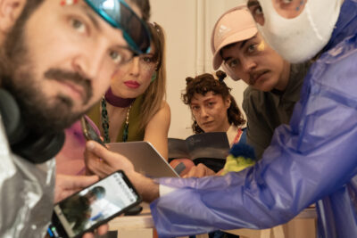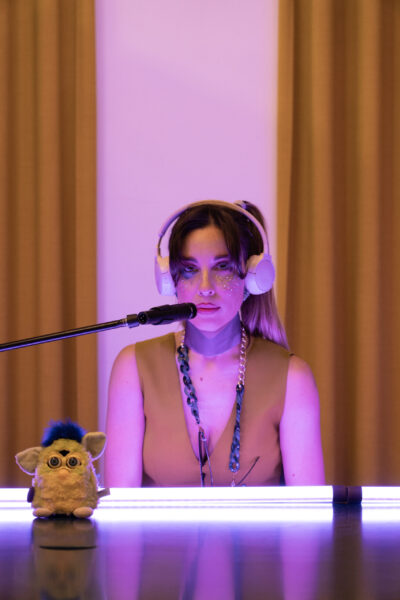 With shades of pop and sci-fi aesthetics, a universe unfolds—paradoxical yet eerily familiar—where humans drift between loss, longing, and the quiet hum of technology.