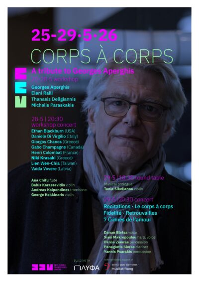 To celebrate Georges Aperghis’ 80th birthday, the Greek Composers’ Union presents a tribute to his work and a music theatre workshop. The composer will be with us in person for a round table two final concerts: the first concert showcasing the workshop participants, the second concert featuring his own music-theatre works. The event will conclude with the Union naming him Honorary President.