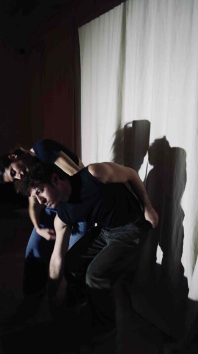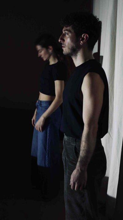 Two performers move along parallel paths through space and time. They shift from the public sphere and the arena of everyday life into their private sphere, where they allow their vulnerable sides — those they constantly try to hide — to surface and be revealed. They shift between exposure and privacy, between the image they construct in order to survive and the real one they inevitably face when looking in the mirror. An ode to what is lost when the rhythms of daily life become relentless and unbearable, to the confrontation with social expectations and demands — to two people persistently seeking a new balance, even when everything around them feels so difficult.