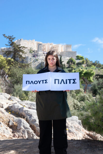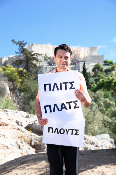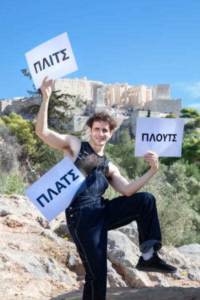 After their debut performance, “Wanna Bet? A Show About Gambling in Greece,” Who Am I To returns with their new production, “PLITS PLATS PLOUTS, A Cocktail on the House from Tourism Workers.” Continuing their exploration of form and content, they now tackle the current and pressing issue of tourism, attempting to connect with the present day through the theatrical style of meta-revue.
