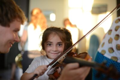 in all kinds of institutions such as eldery homes, asylum seekers’ centres, homeless shelters and prisons. Audiences of very different backgrounds and ages, with or without access to public life and in all parts of the Netherlands as well as abroad. The program of every performance consists of short pieces in many different genres: classical, pop, jazz and also genres of non-western music-cultures.