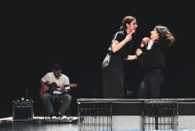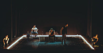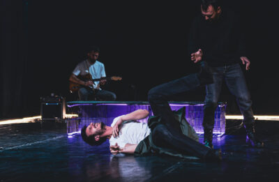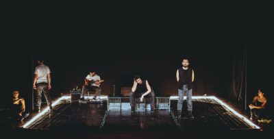 Five actors and one musician on stage create a dystopian setting, depicting the vicious cycle of aggression, the lack of prospects for young people, and the questioning of our traditional institutions: family, society, politics, and the police.