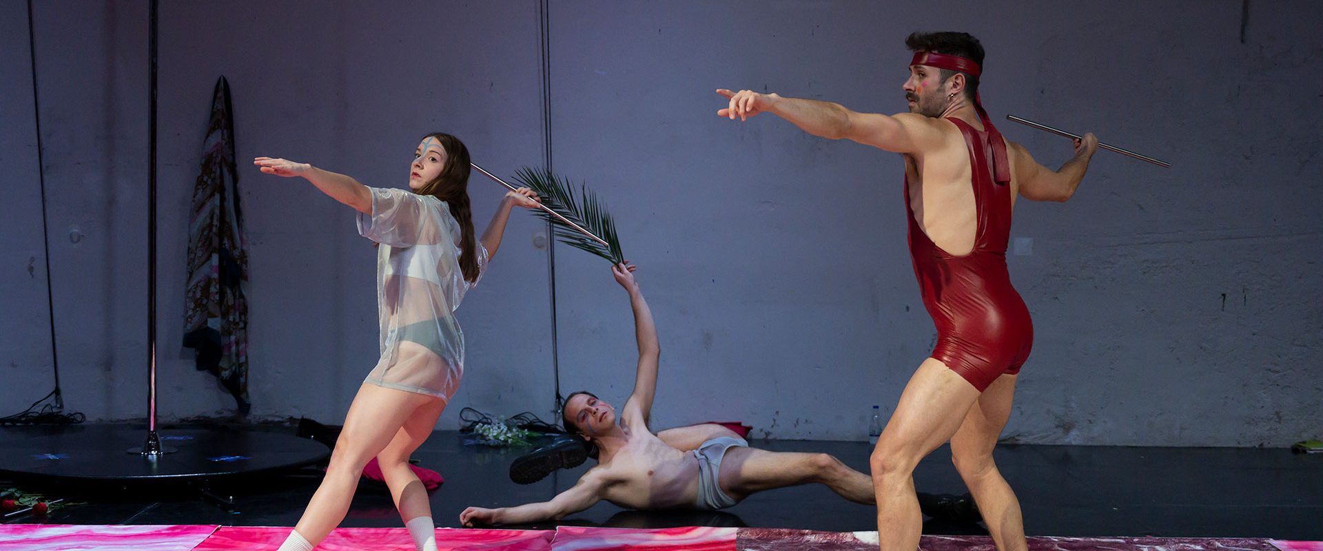 Sebastian is a polyprismatic archetype, a kaleidoscope, an avatar of desires and moods. Reflecting on the tradition of the martyrdom of Saint Sebastian, as it is reformulated through the dense figurative representation in Western art from the early Renaissance onwards, we focus on concepts / sensations / symbols that touch our own sensibility and imagination. The performance is the totality of its cultural references. We read poems, reenact paintings, act, pose, sing, dance, get inspired by the tradition of an eccentric, experimental cinema. We are interested in the co-emotional and embodied practices through which we today can relate to such a symbol.