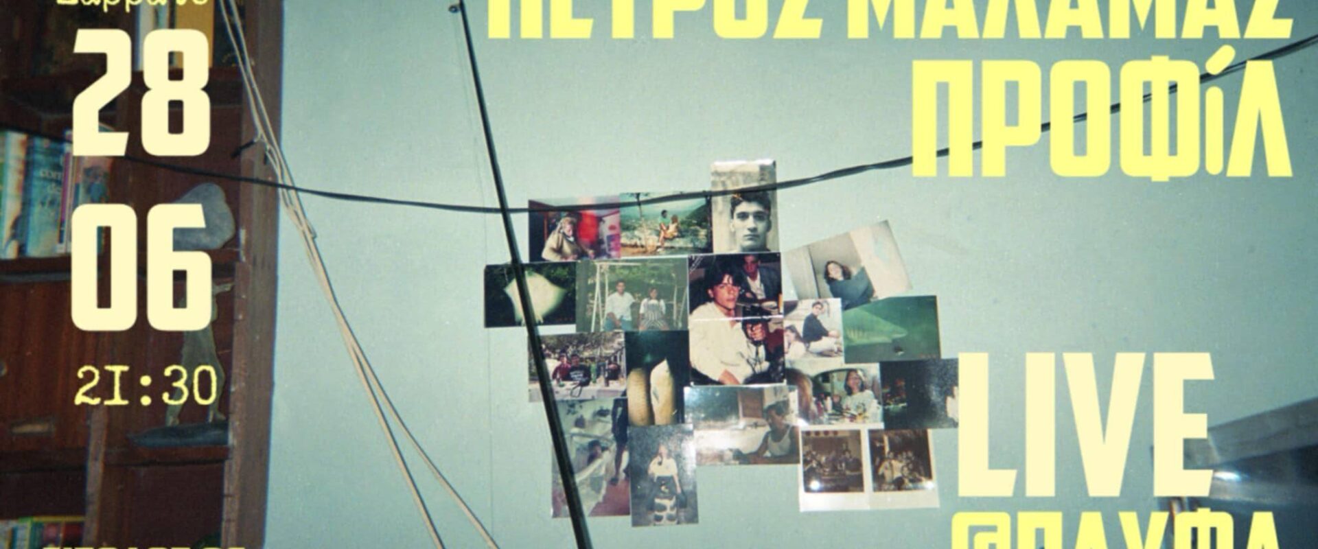 Το Σάββατο 28/06 ο Πέτρος Μάλαμας και οι Προφίλ, μας προσκαλούν σε ένα μοναδικό καλοκαιρινό live. Με κοινό παρανομαστή τα δυνατά και μελωδικά riff, τον διεισδυτικό στίχο, αλλά και κοινές επιρροές από την ελληνική και ξένη σκήνή των 90΄s, 00’s και 10’s ο Πέτρος Μάλαμας και οι Προφίλ μας υπόσχονται μία μεθυσμένη βραδιά γεμάτη μουσική και ποίηση.